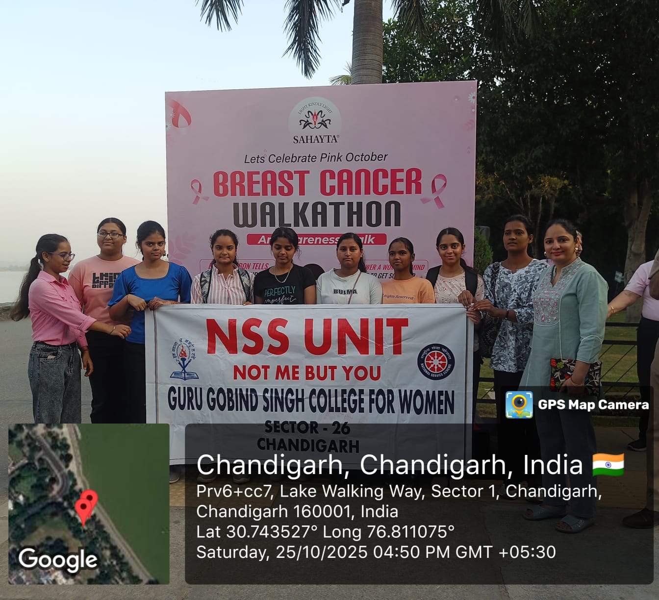 This initiative supported the global mission of ensuring that all women remain in the pink of health through timely awareness and preventive care. NSS volunteers of Guru Gobind Singh College for Women, Chandigarh, along with the NSS Programme Officer, actively participated under the encouragement and guidance of Dr. Jatinder Kaur, Principal.