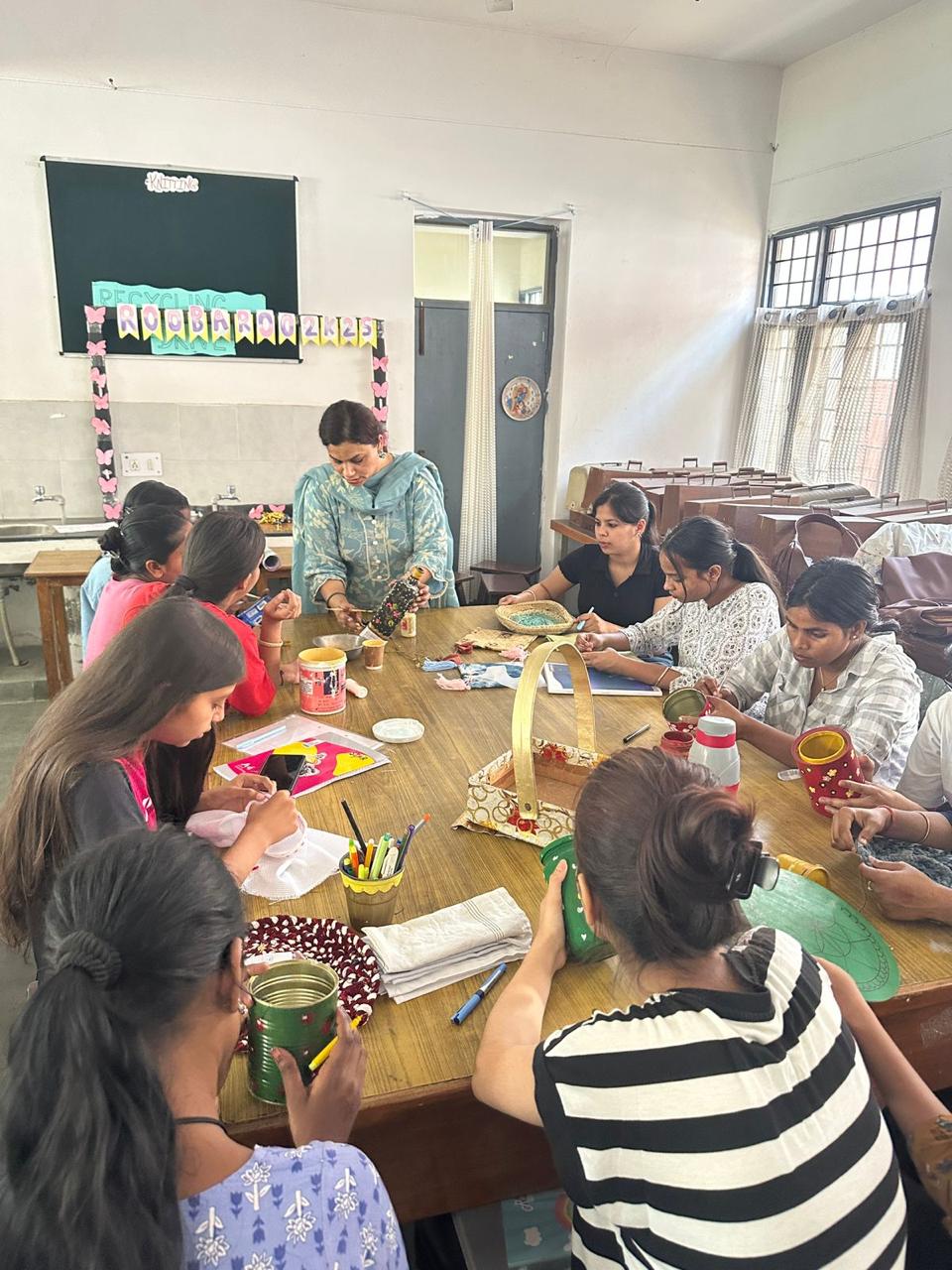 A Recycling Craft Workshop followed by a “Best Out of Waste” Competition was organized by Guru Gobind Singh College for Women under the aegis of the Vasudha Club to promote environmental awareness, and encourage creative expression among students on 23rd April 2026. The resource person for the Workshop was Ms. Sonu , an artist with specialisation in Fine Arts. The workshop aimed to sensitize students about the importance of recycling and sustainable living. Participants were guided on how to creatively transform discarded materials such as plastic bottles, newspapers, cardboard, and old fabrics into useful and decorative items. The session was interactive and hands-on, allowing students to explore innovative ideas and techniques. The “Best Out of Waste” Competition was conducted to provide a platform for students to showcase their creativity and environmental consciousness. The participants displayed remarkable ingenuity by converting waste materials into aesthetically appealing and functional products such as pen stands, wall hangings, planters, organizers, and decorative pieces. The entries were judged on the basis of creativity, utility, originality, and eco-friendliness. The competition witnessed enthusiastic participation, reflecting the students’ commitment towards sustainable practices and environmental responsibility. The event successfully instilled the values of resource conservation and highlighted the importance of reducing waste through creative reuse. It also reinforced the message that small individual efforts can collectively contribute to a greener and healthier planet. The workshop and competition concluded with the announcement of winners and appreciation of all participants for their efforts and innovative thinking.