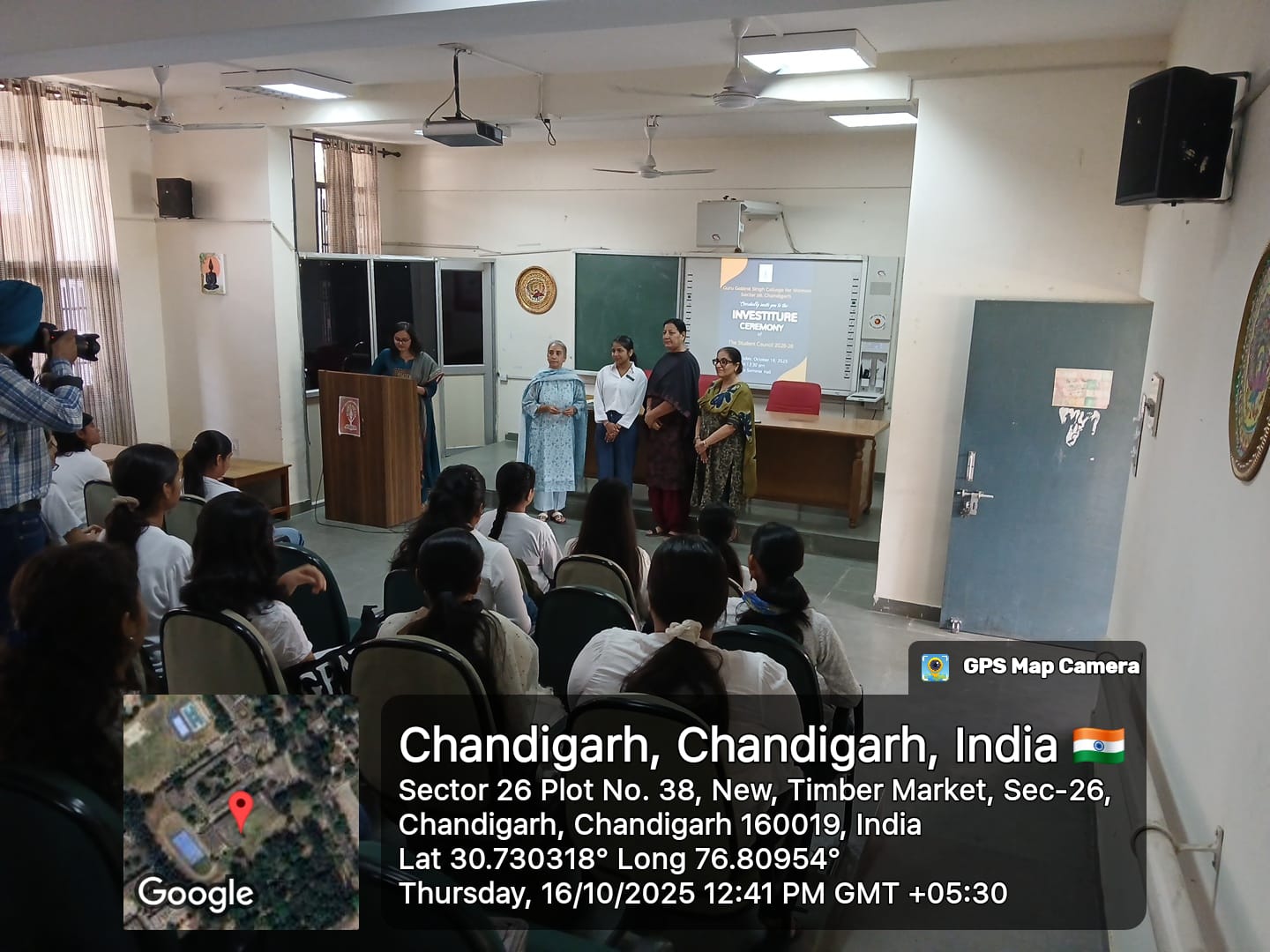The Investiture Ceremony of the Student Council and Class Representatives for the session 2025–26 was held at Guru Gobind Singh College for Women, Chandigarh. The event celebrated leadership, responsibility, and commitment as newly elected members formally assumed their roles. Principal Dr. Jatinder Kaur congratulated the council, urging them to lead with humility, honesty, and service. The members received badges and took an oath to uphold the college’s values with sincerity and integrity.